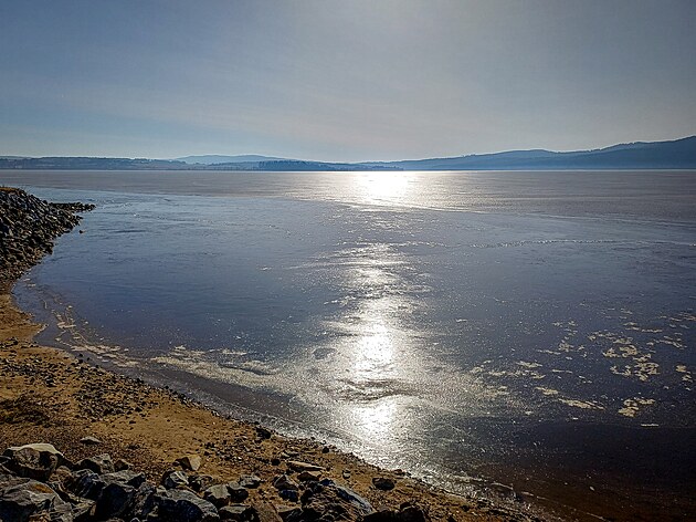 Ledová krusta na hladině lipenské přehrady v Dolní Vltavici. (6. března 2026)