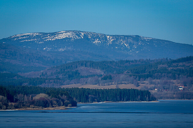 Jarní pohled na Plechý a část lipenské přehrady. (6. března 2026)