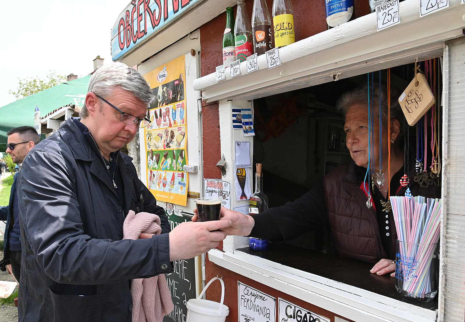 Ministr průmyslu a obchodu a ministr dopravy Karel Havlíček si kupuje pití u stánku s občerstvením v přístaviti Vnorovy, kde se 29. května 2021 zúčastnil otevření zmodernizovaného přístavu na Baově kanále ve Veselí nad Moravou na Hodonínsku.