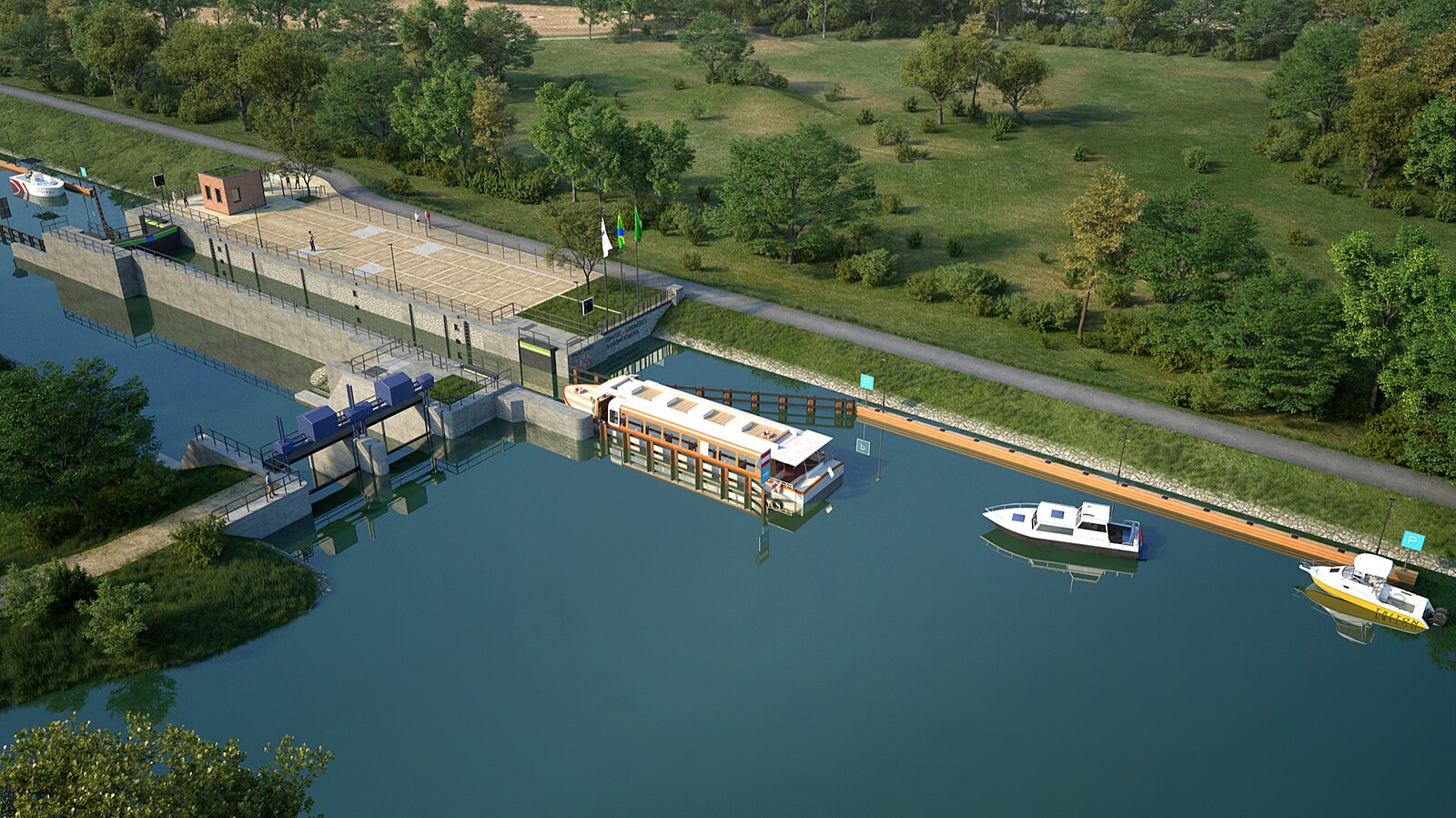 Vizualizace plavební komory Rohatec/Sudoměřice.