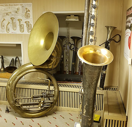 Sbírka vznikla už při založení školy na výrobu hudebních nástrojů. To bylo ještě za císaře Františka Josefa. Postupně se rozrůstala o jedinečné nástroje. Patří k nim například obří třímetrová tuba a podobně. Po roce 1945 se rozrostla o další exponáty, které v Kraslicích a okolí zanechali odsunutí sudetští Němci. Ale stále byla ve škole na půdě.