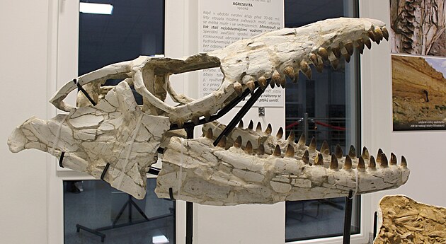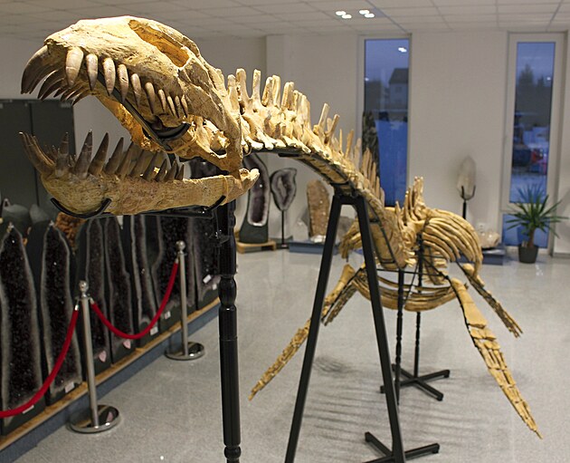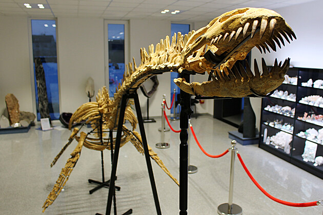 Galerie minerálů vystavila kostru mosasaura, váží sto kilogramů a měří 4,5 metru.