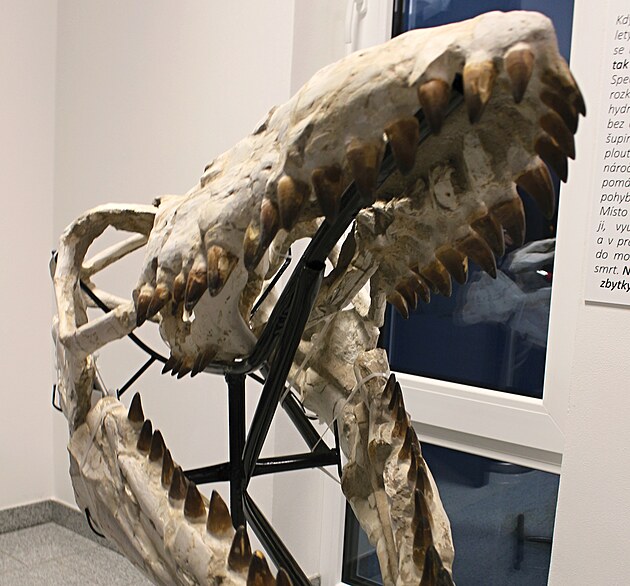 Ve dvorské Galerii minerálů je nově k vidění lebka mosasaura. (22. ledna 2026)