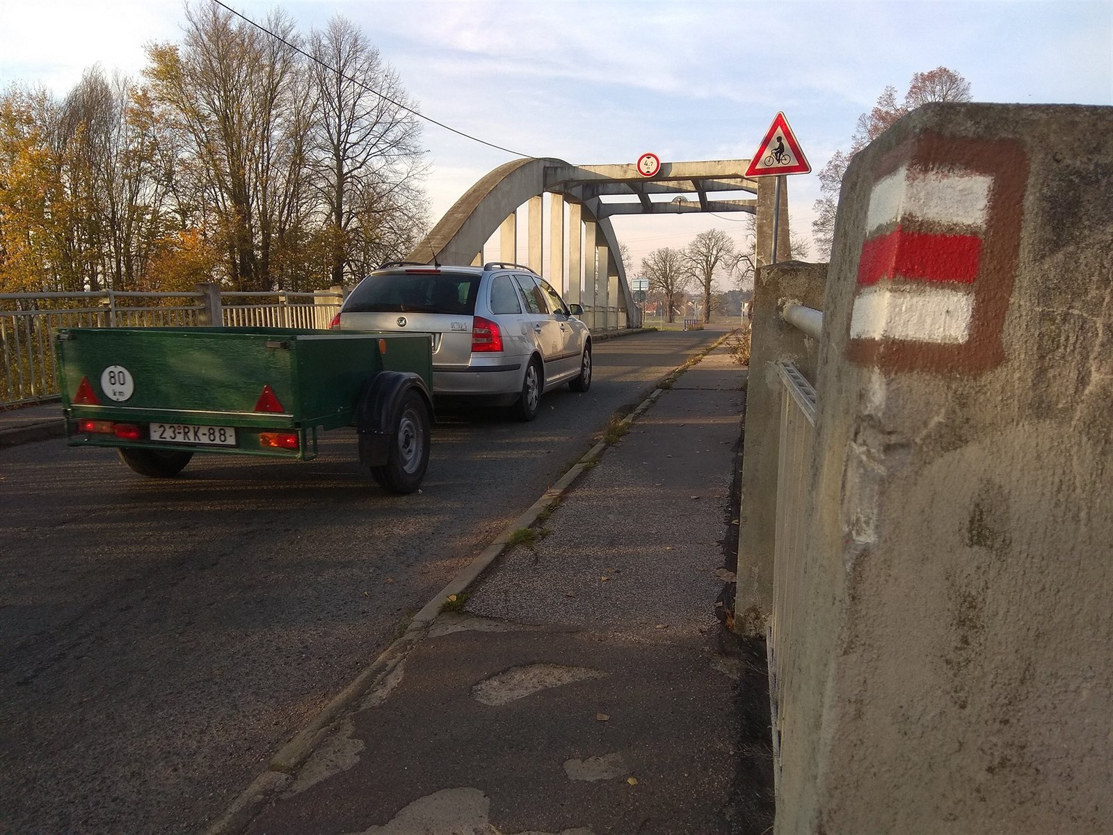 Provoz na mostě přes Orlici je v současnosti kyvadlový. (2016)