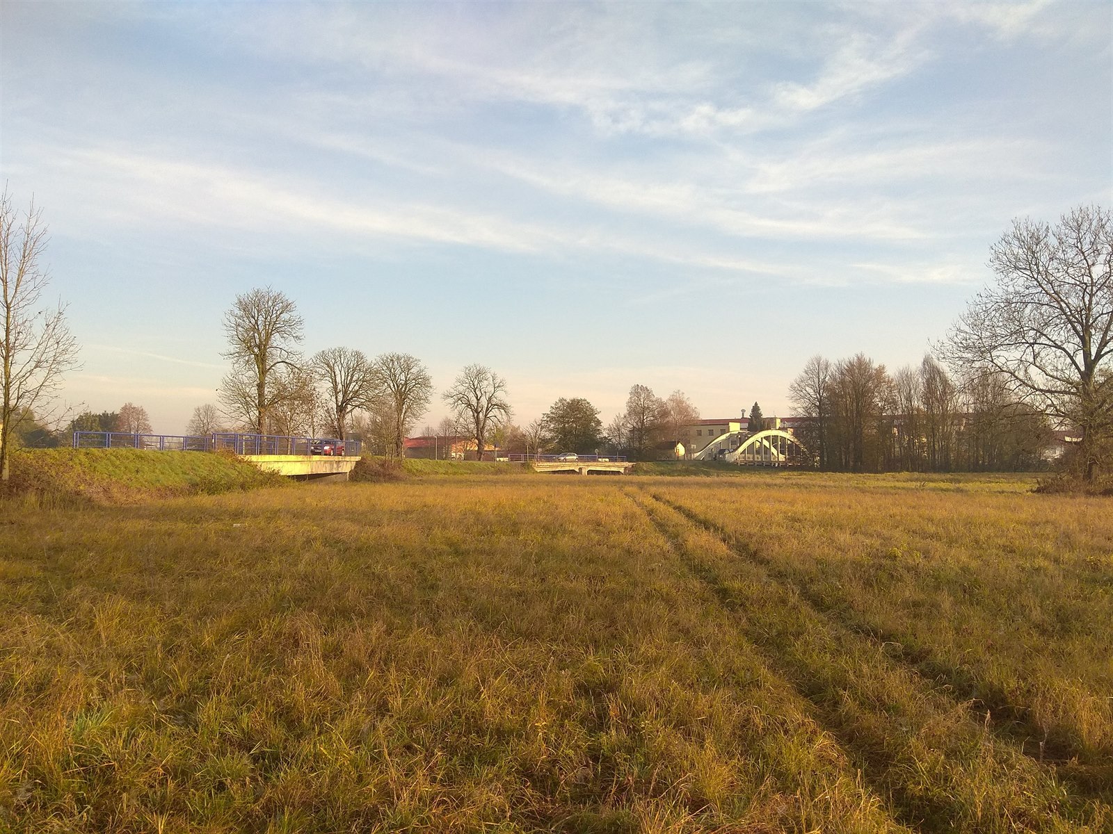Úzká silnice mezi Albrechticemi a Týništěm vede mezi loukami, které každoročně zaplavuje voda z Orlice.