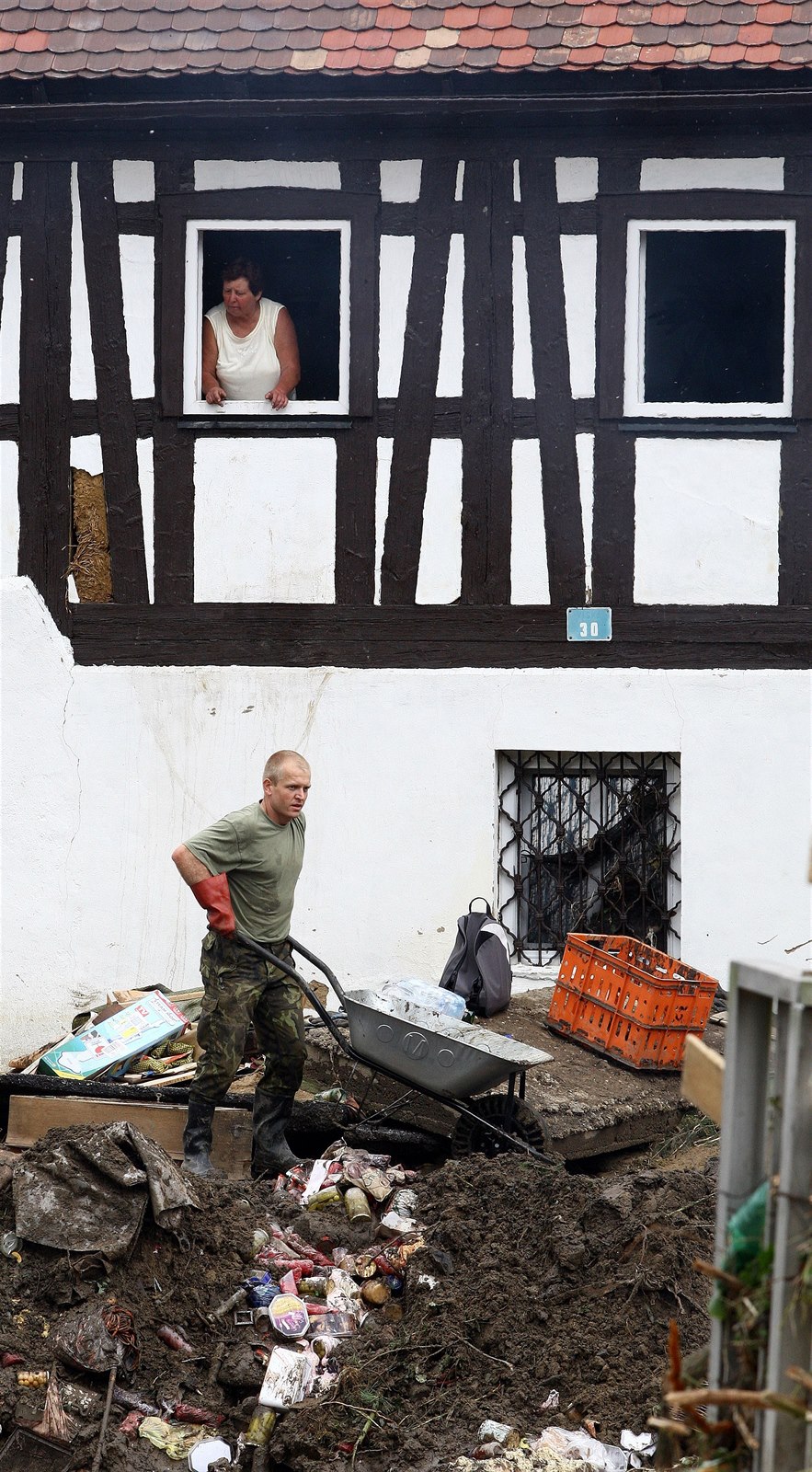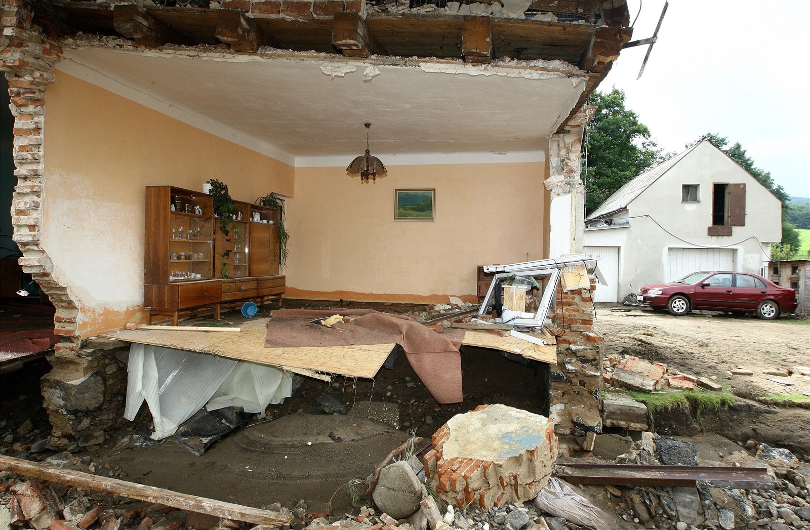 Některé domy v Lindavě zaplavila voda, u jiných se zastavila na prahu (18. července 2021).