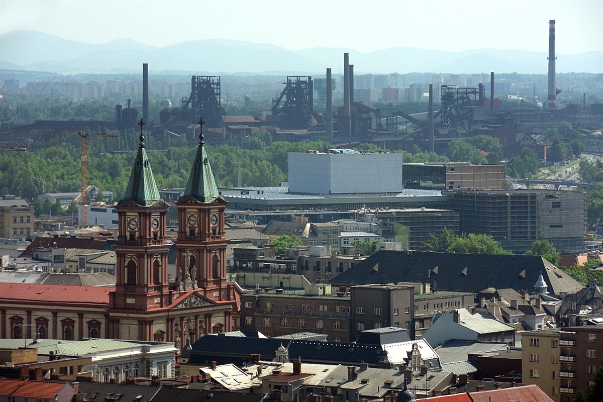 Pohled z radnice na katedrálu Božského spasitele a Vítkovice