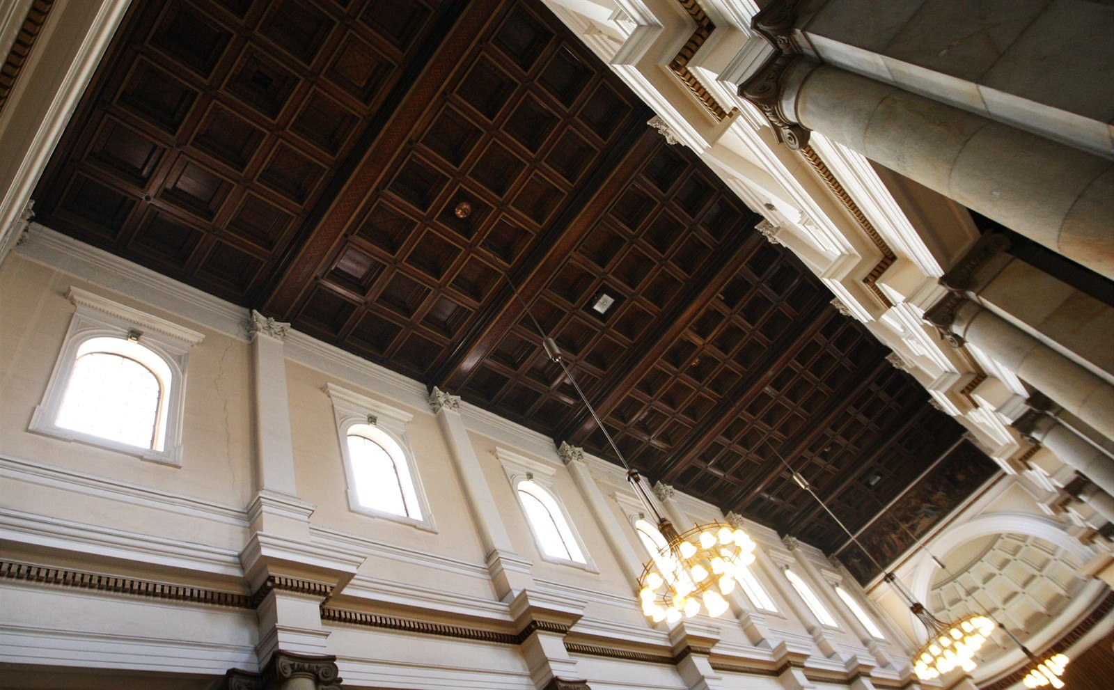 Ozdobou ostravské katedrály je i starobylý kazetový strop.