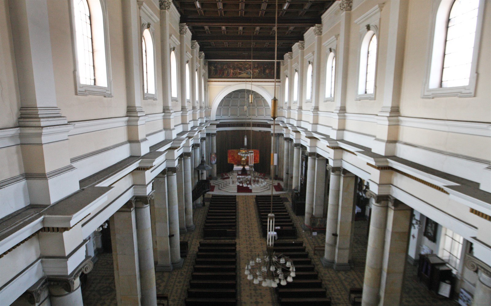 Pohled z kúru do hlavní lodi katedrály Božského Spasitele