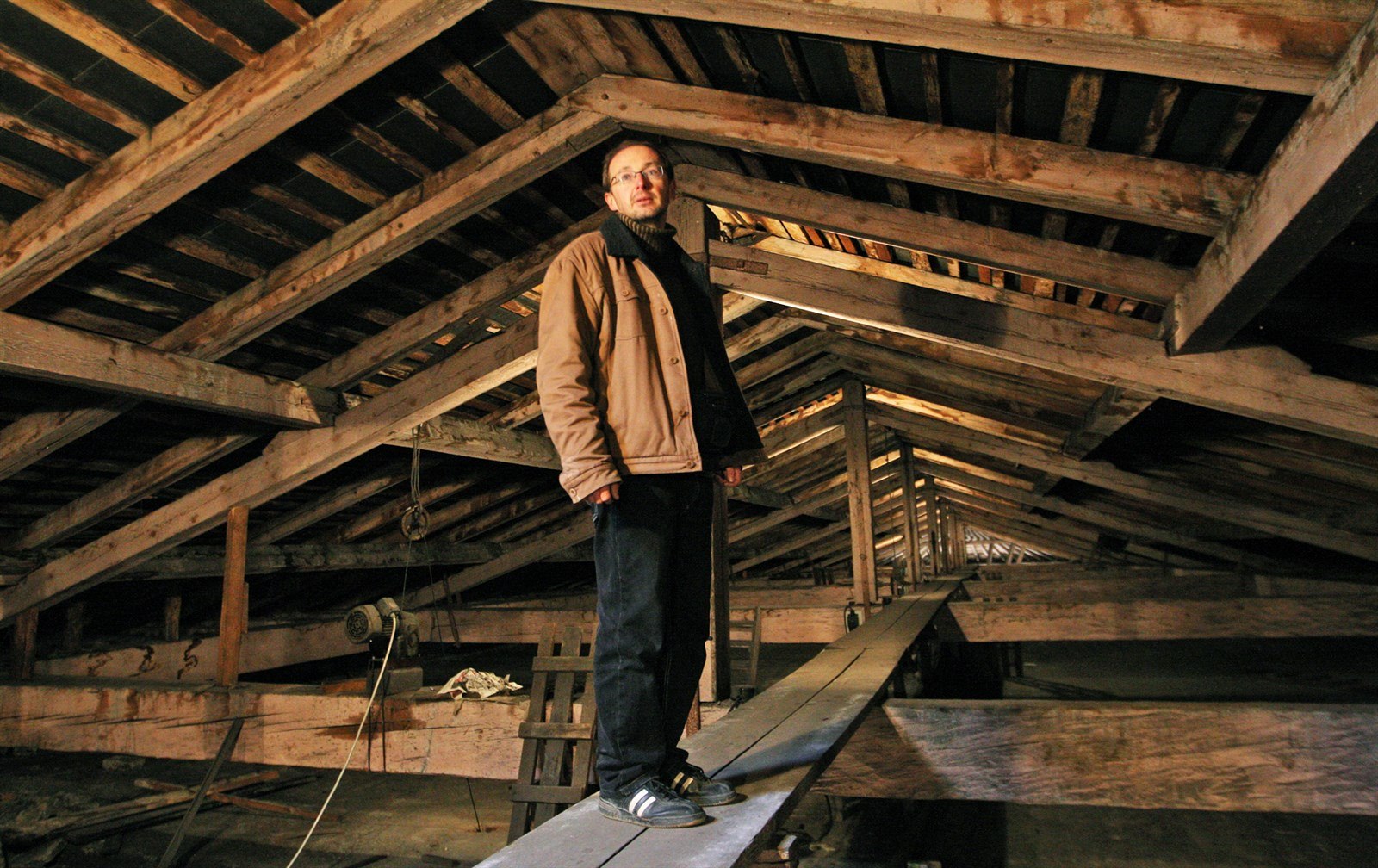Kostelník Martin Vichnar na půdě ostravské katedrály Božského Spasitele
