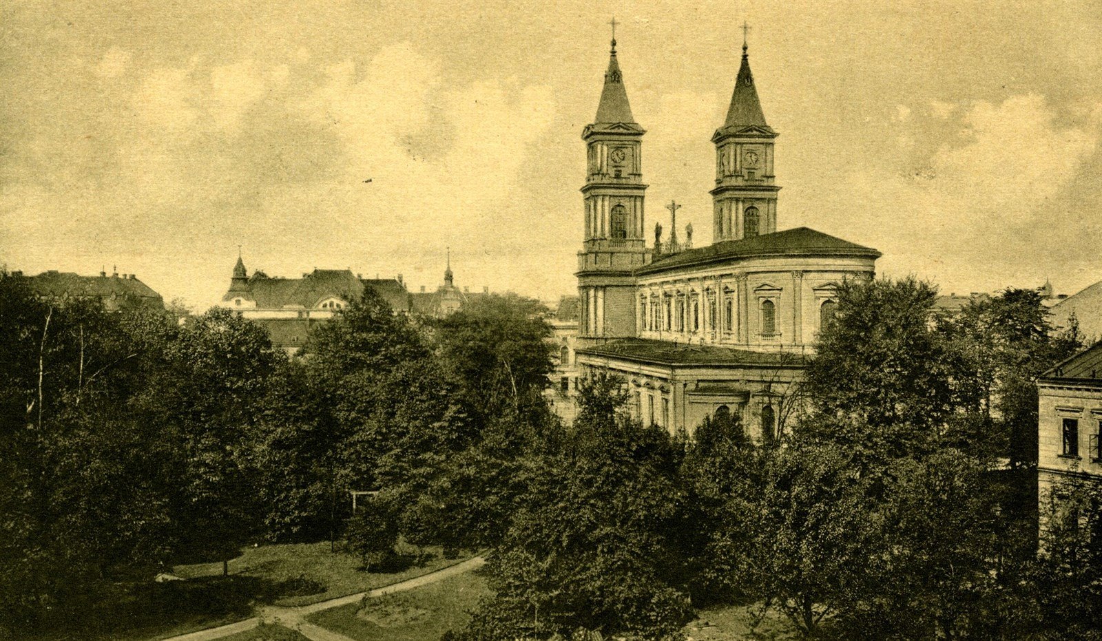 Katedrála Božského Spasitele v Ostravě na dobové fotografii
