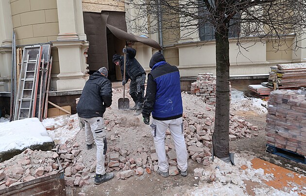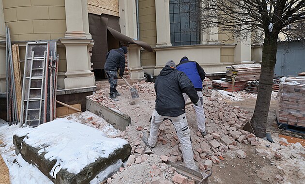 Dělníci se na staveniště dostanou přímo z ulice, katedrálou Božského Spasitele v Ostravě tak nemusejí vůbec procházet. (15. leden 2026)