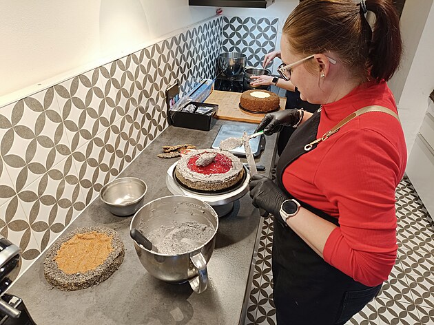 Gastronomickou mapu Česka zdobí podniky, které fungují v Šumperku. Získaly si již celorepublikový ohlas. Cukrářka kavárny Pikola připravuje makový dort.