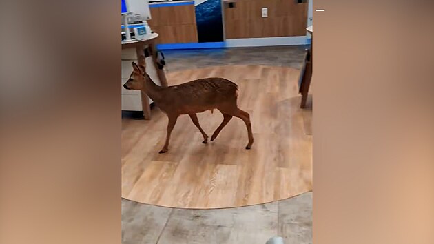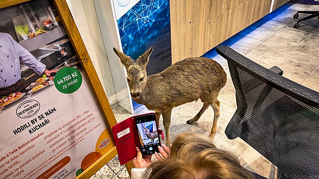 Srnce si v obchodním domě fotili návštěvníci. (15. ledna 2026)