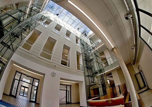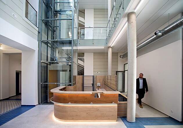 Interiér nového sídla Úřadu městského obvodu Plzeň 4. (24. února 2026)
