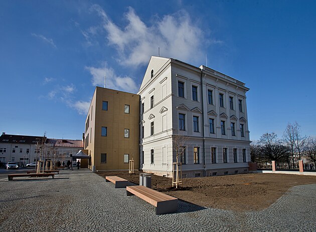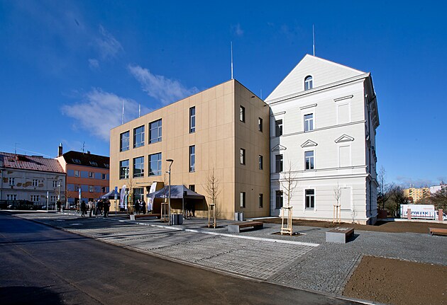 Rekonstrukce změní bývalou školu v Plzni - Doubravce v sídlo místní radnice. Z moderní přístavby už zmizelo lešení.