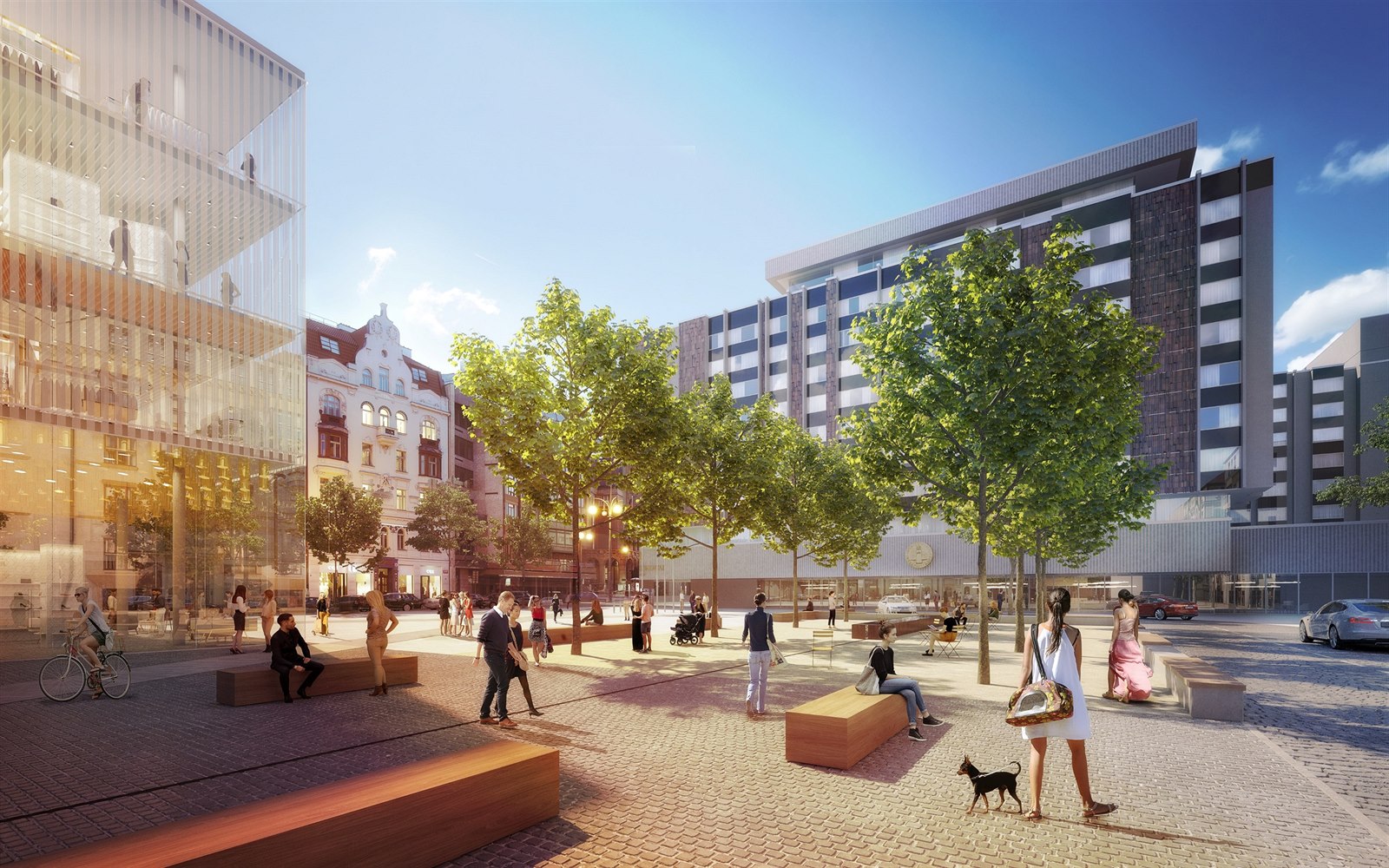 Vizualizace plánovaného prostoru v okolí pražského hotelu InterContinental na Starém Městě. (7. listopadu 2019)