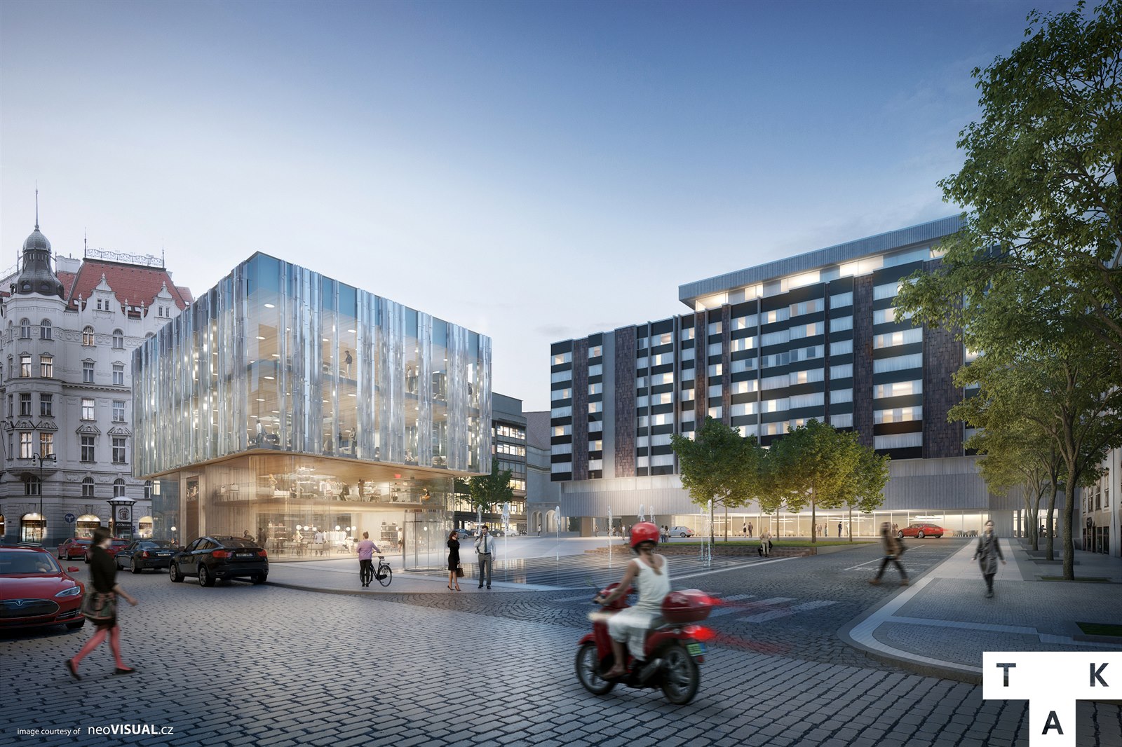 Vizualizace rekonstrukce hotelu InterContinental, náměstí Miloše Formana (7. listopadu 2019)