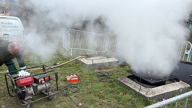 V pražské ulici Na Padesátém prasklo potrubí.2 (21. ledna 2026)
