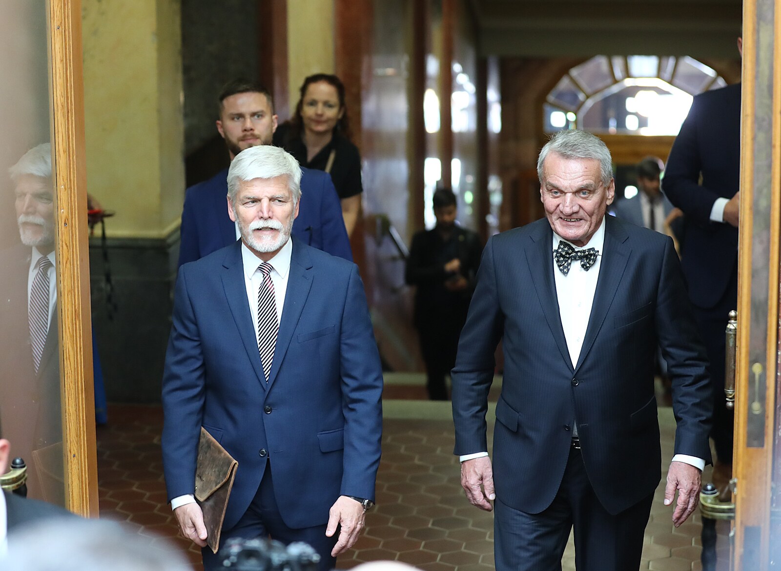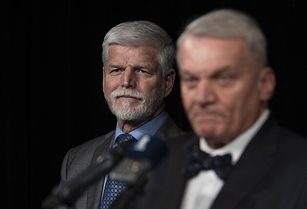 Briefing k dnešní návštěvě Prahy Petra Pavla a Evy Pavlové. Na fotce zleva: prezident Petr Pavel, primátor Prahy Bohuslav Svoboda. (17. února 2026)