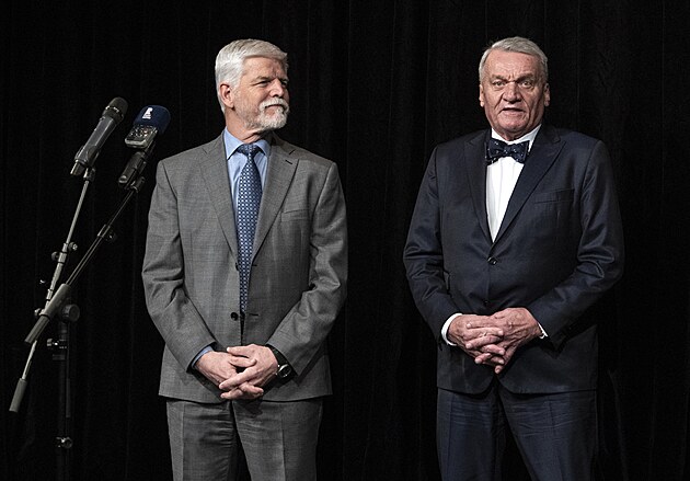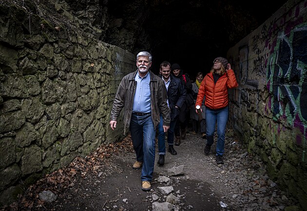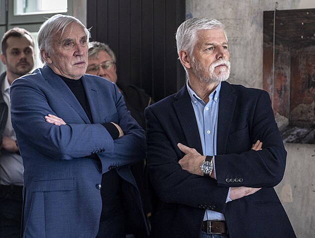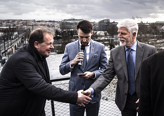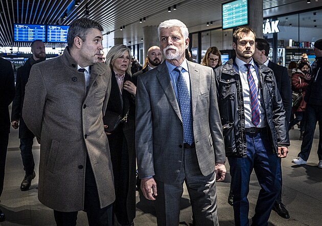 Prezident Petr Pavel s bývalým ředitelem České televize Petrem Dvořákem na představení vlakového nádraží Bubny. (17. února 2026)