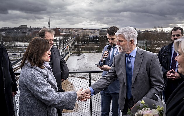 Prezident Petr Pavel s manželkou Evou během své návštěvy Prahy. S představiteli metropole debatoval také o drogové problematice. Na fotografii starosta Prahy 5 Lukáš Herold. (18. února 2026)
