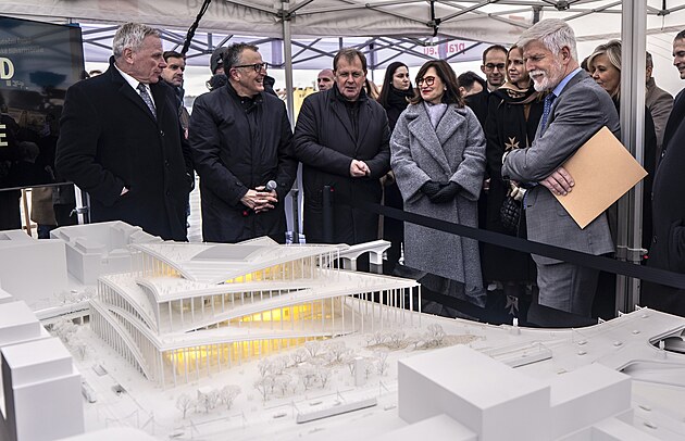Prezident Petr Pavel s manželkou Evou Pavlovou během své návštěvy Prahy navštívili vlakové nádraží Bubny, kde jim byl představen plán realizace Vltavské filharmonie. (17. února 2026)