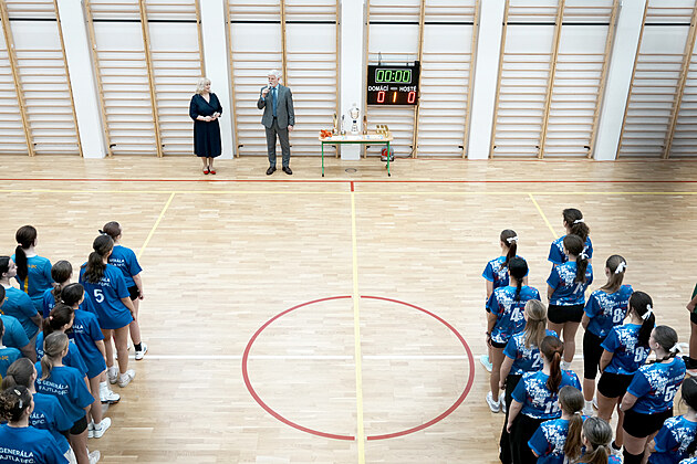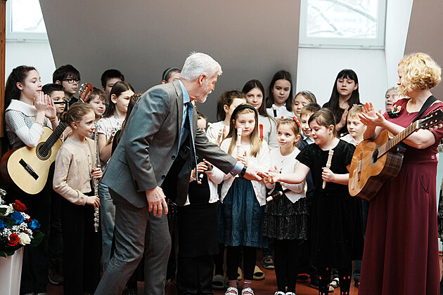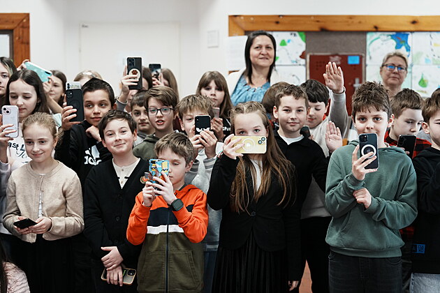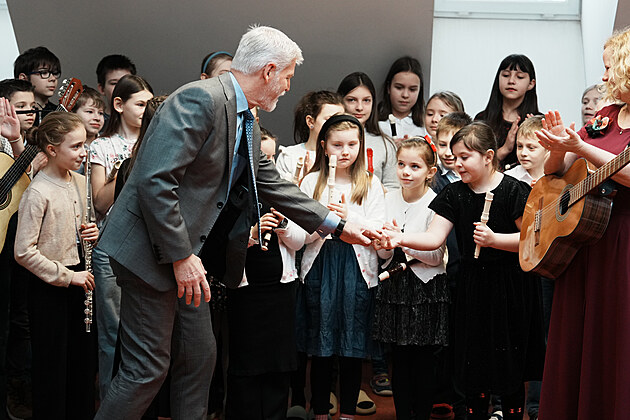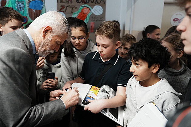Žáci Základní školy Generála Františka Fajtla v Letňanech během návštěvy prezidenta Petra Pavla. (17. února 2026)
