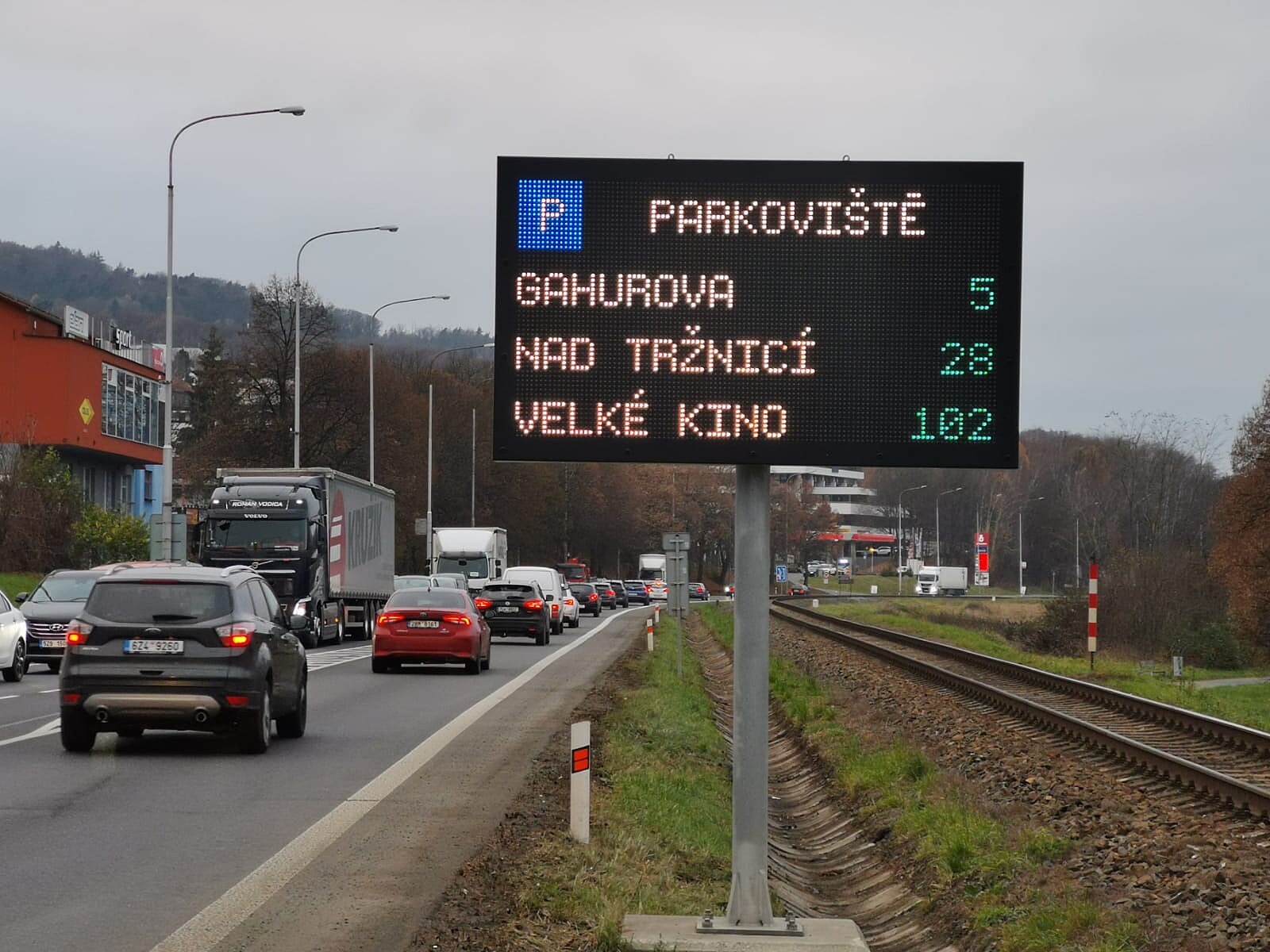 Elektronické cedule ve Zlíně nově informují i o počtech volných parkovacích míst v centru (prosinec 2022)