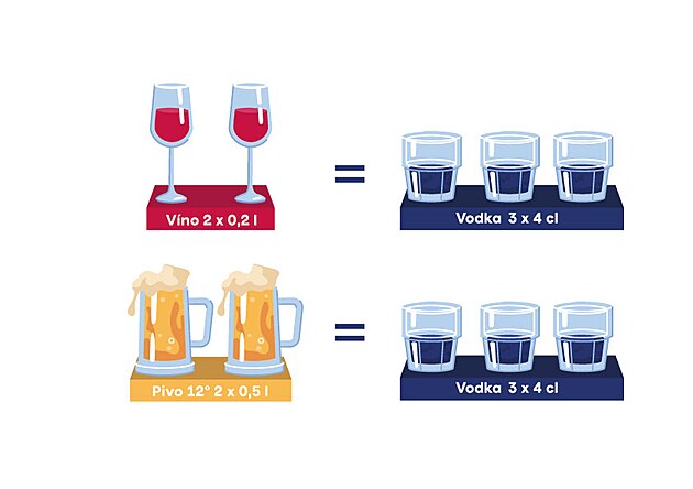 V České republice je stále posilováno přesvědčení, že pivo nebo víno jsou alkoholické nápoje, které jsou vůči lidskému zdraví méně škodlivé než panák jakékoli lihoviny. Tenhle obraz ale stojí hlavně na zvyku a emocích, ne na faktech. Ve všech alkoholických nápojích totiž najdeme stejný etanol, liší se jen jeho koncentrace. Pivo má běžně kolem 4,5 %, víno přibližně 12 % a lihovina zhruba 40 %.