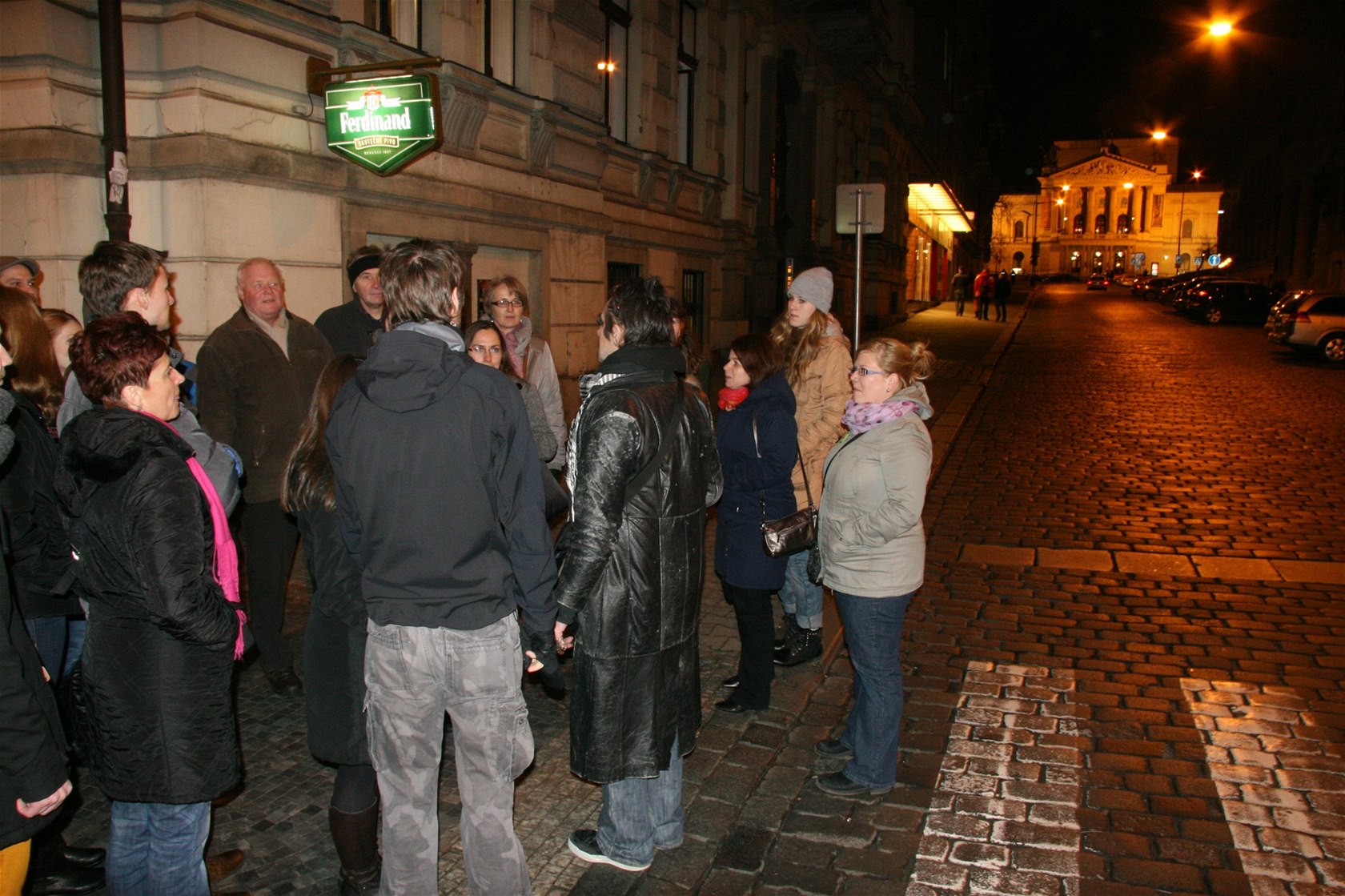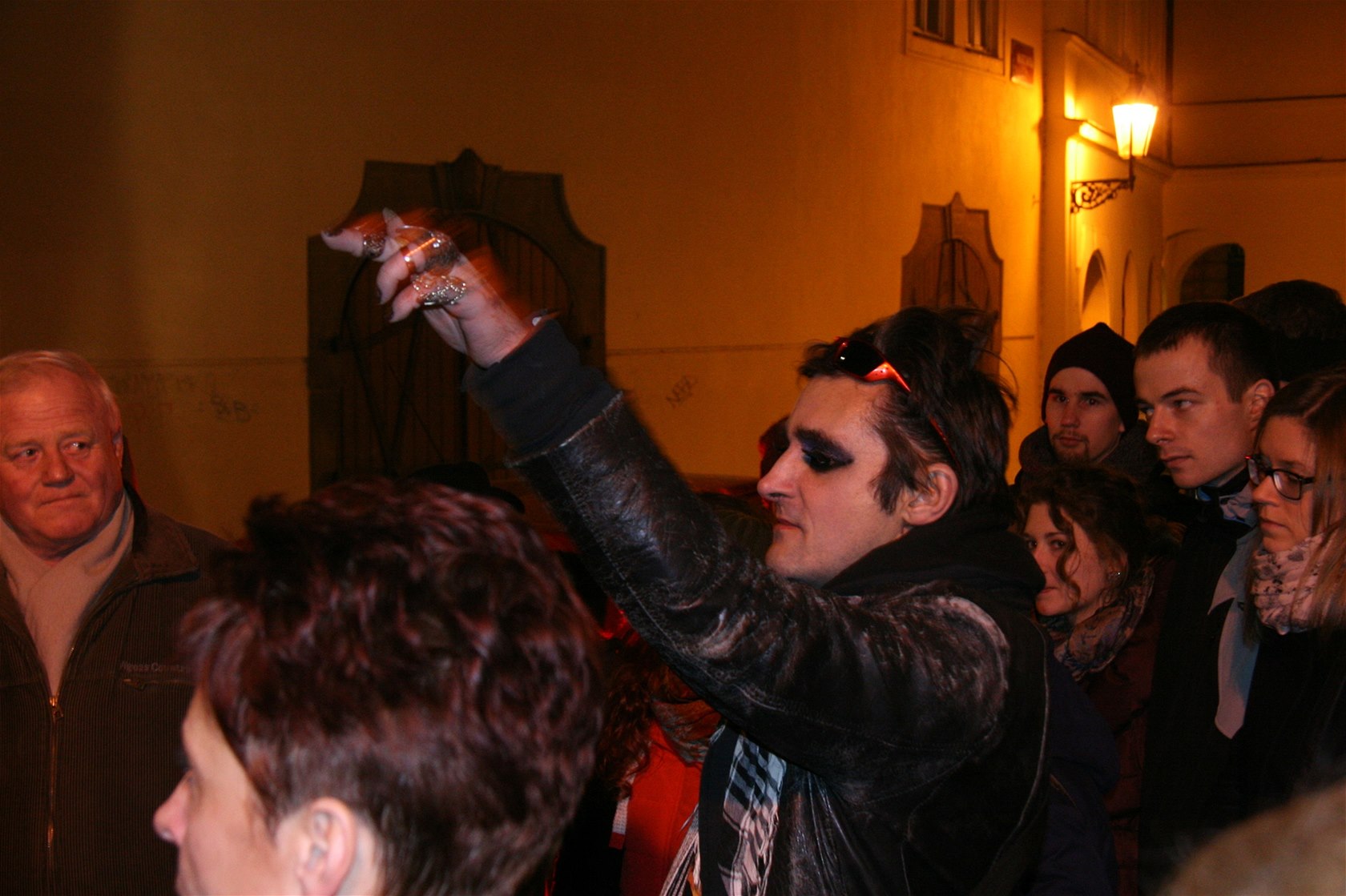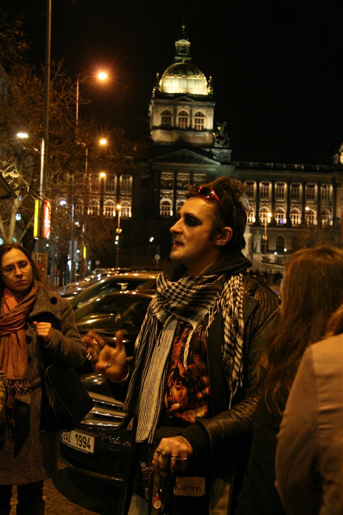 Karim občas ve vyprávění sklouzne do duchařských historek. V domě vpravo, na němž jsou dvě lucerny, byly za komunismu výslechové místnosti StB. Karim vypráví, že i v parném létě před ním kolemjdoucí cítí chlad.