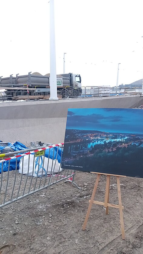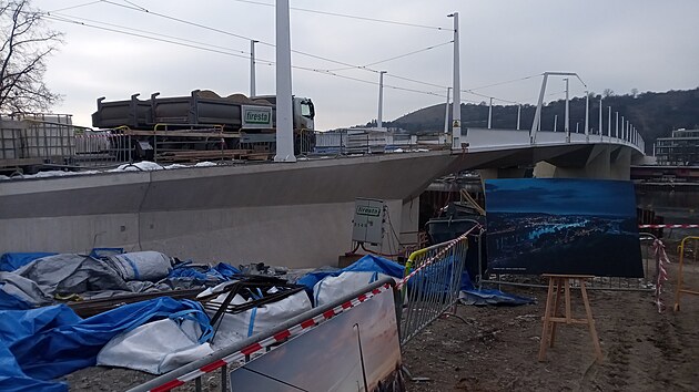 Na mostě již v září ležela část tramvajových kolejí. (10. září 2025)