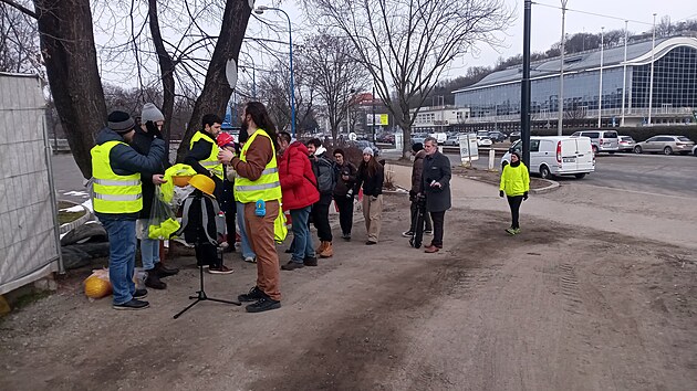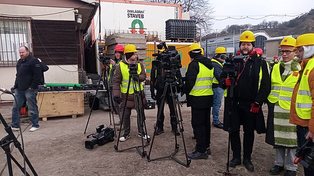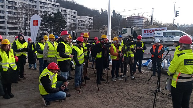 Dvorecký most prošel oficiální zátěžovou zkouškou. Zájem novinářů byl enormní. Fronta na ochranné pomůcky.