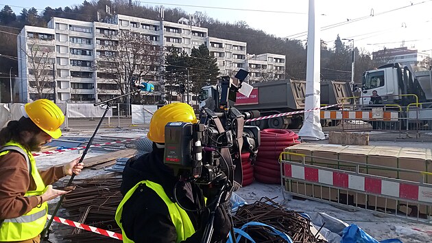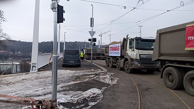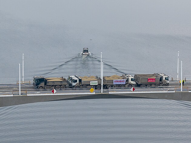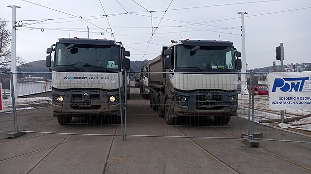 Dvorecký most prošel oficiální zátěžovou zkouškou. Motory náklaďáků startují, je třeba zachytit každý pohyb i zvuk.