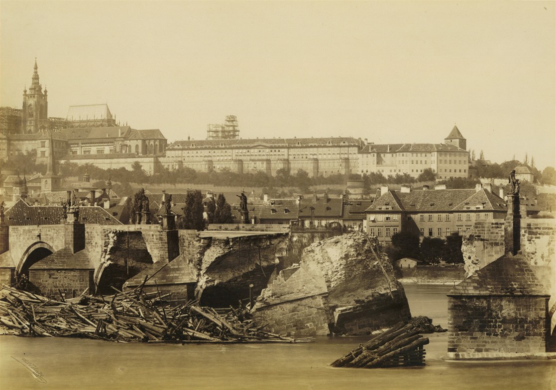 Pobořený Karlův most v září 1890