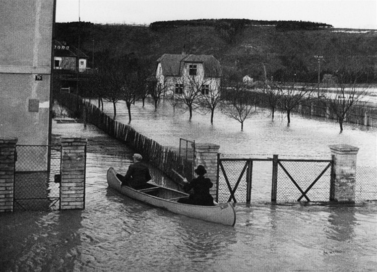 Na Slovanském ostrově při povodni v roce 1940