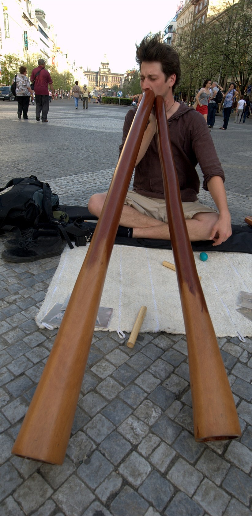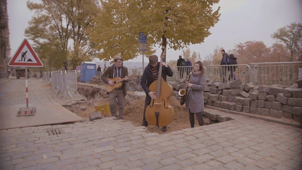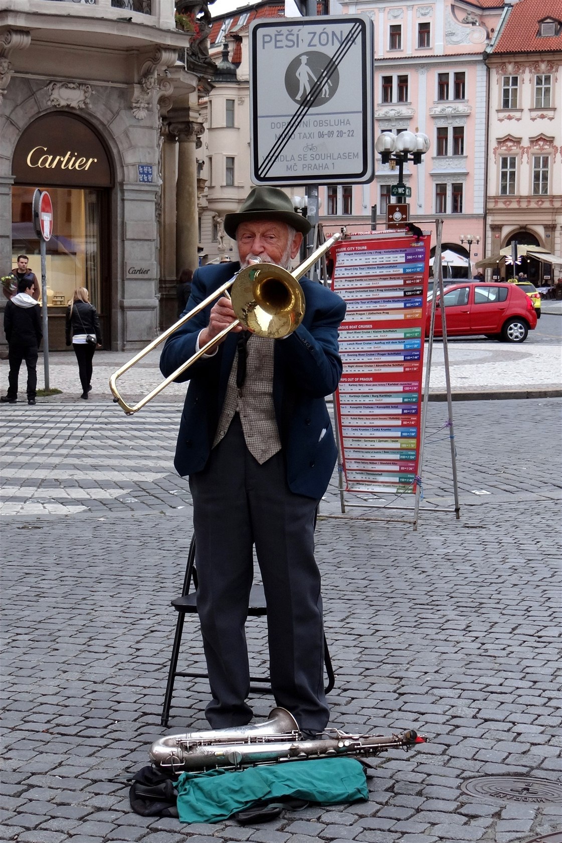 Pouliční umělec v centru Prahy.