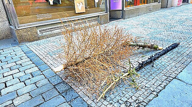 Popeláři odhadují, že se každý rok objevují v ulici metropole stovky tisíc „použitých“ jehličnanů. Nakonec jsme se rozhodli pětisetkorunovou odměnu věnovat čtenáři Martinu Stehlíkovi. Ten nám zaslal vyhozený strom v ulici Na Můstku, který zde někdo nedbale a proti všem pravidlům opřel o fasádu jednoho z domů.