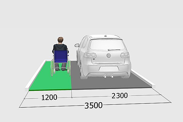 Situační nákres pro správné rozměry parkovacího místa pro vozíčkáře