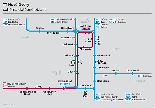 Trať na Nové Dvory a jak to pojede? Tramvajová trať Nové Dvory Linka 17 (městská denní linka TRAM) VOZOVNA KOBYLISY – Vozovna Kobylisy (T) – Líbeznická – Březiněveská (Z) – BŘEZINĚVESKÁ (T) – KOBYLISY (C) – Ke Stírce – Hercovka – Nad Trojou – Trojská – Nádraží Holešovice (C) (S) – Výstaviště (S) – Veletržní palác – Strossmayerovo náměstí – Nábřeží Kapitána Jaroše (T) – Čechův most – Právnická fakulta – Staroměstská (A) – Karlovy lázně – Národní divadlo – Jiráskovo náměstí – Palackého náměstí (B) – Výtoň – Podolská vodárna – Kublov – Dvorce – Přístaviště – Pobřežní cesta – Nádraží Braník (S) – Černý kůň – Hodkovičky – Belárie – Modřanská škola – Nádraží Modřany (S) – Čechova čtvrť – Poliklinika Modřany – U Libušského potoka – Modřanská rokle – SÍDLIŠTĚ MODŘANY – LEVSKÉHO (Z) – Hasičská stanice Modřany – Observatoř Libuš – Sídliště Libuš – Libuš – Přírodní – Chýnovská (Z) – NOVÉ DVORY Linka 92 (městská noční linka TRAM) LEHOVEC – Sídliště Hloubětín – Hloubětín – Starý Hloubětín – Vozovna Hloubětín – Nový Hloubětín – Kolbenova – Poštovská – Špitálská – Vysočanská (Z) – Nádraží Vysočany – Poliklinika Vysočany – Divadlo Gong – Balabenka – Palmovka – Palmovka (T) – Invalidovna – Urxova – Křižíkova – Karlínské náměstí – Florenc – Bílá labuť – Masarykovo nádraží – Jindřišská – Václavské náměstí – Vodičkova – Lazarská – Novoměstská radnice (Z) – Karlovo náměstí – Moráň (T) – Palackého náměstí – Palackého náměstí – Výtoň – Podolská vodárna – Kublov – Dvorce – Přístaviště – Pobřežní cesta – Nádraží Braník – Černý kůň – Hodkovičky – Belárie – Modřanská škola – Nádraží Modřany – Čechova čtvrť – Poliklinika Modřany – U Libušského potoka – Modřanská rokle – Sídliště Modřany – Levského (Z) – Hasičská stanice Modřany – Observatoř Libuš – Sídliště Libuš – Libuš – Přírodní – Chýnovská (Z) – NOVÉ DVORY Linka 189 (městská denní linka BUS) KAČEROV (C) (S) – Nemocnice Krč – Zálesí – Sídliště Krč – Tempo – Nové Dvory – Cílkova – Lhotecký les – SÍDLIŠTĚ LHOTKA Linka 215 (městská denní linka BUS) KAČEROV (C) (S) – Nemocnice Krč – Zálesí – Sídliště Krč – Tempo – Nové Dvory (T) – Chýnovská (Z) – Přírodní – Libuš – SÍDLIŠTĚ LIBUŠ |