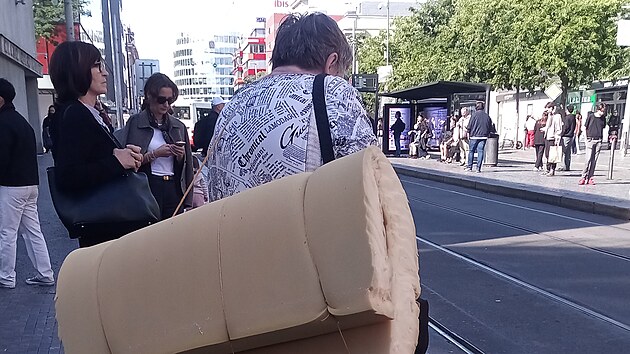 Občas potkáte někoho, kdo přenáší sem a tam své živobytí, svůj domov. Týká se to nejen lidí bez domova, ti jsou přenašeči všeho. Někdy natrefíte jen na člověka, který cosi koupil a někam s tím putuje. Jako tento pán na Andělu s matrací.