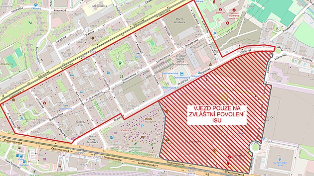Město zároveň zveřejnilo mapu s vyznačenou oblastí a adresami, pro které lze vjezdové oprávnění získat.