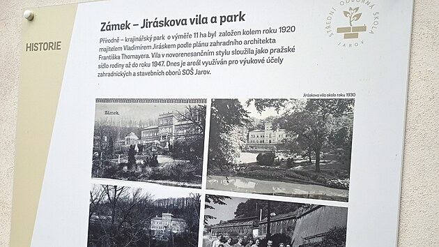 Oficiálně se jmenuje Botanická zahrada Střední odborné školy stavební a zahradnické a rozprostírá se na území historického parku, který kolem roku 1920 založil známý pražský zahradní architekt František Thomayer, bratr proslulého lékaře.
