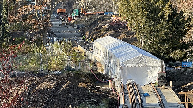 „Všechno jede podle plánu, před příští letní sezonou by se měla otevřít,“ říká muž v přilbě u lanovky, která prochází rekonstrukcí. Podle něj stavbaři nezaznamenali jakýkoli problém s posouvajícím se svahem. Město také schválilo revitalizaci petřínské rozhledny a jejího okolí. Rekonstrukce za 95 milionů korun odstartuje v příštím roce a skončit by měla v roce 2027. Město také pokračuje s rekonstrukcí vyhořelého kostela Michaela Archanděla (více v boxu dole).