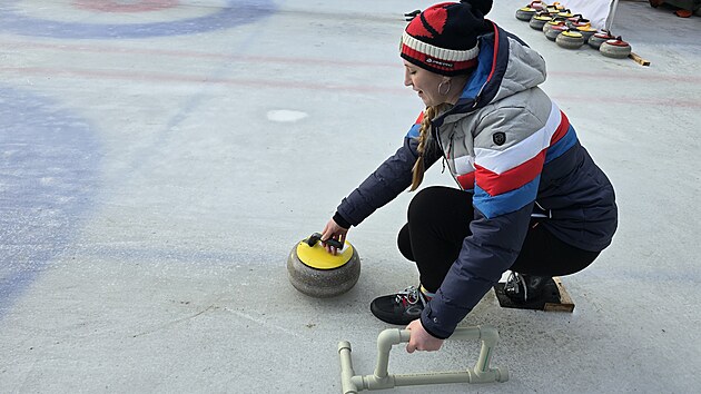 „Vypadá to lehce jako bowling, ale realita je složitější. Je důležité držet správně nohy tak, abyste mohli odhodit kámen,“ vysvětluje hned na začátku.