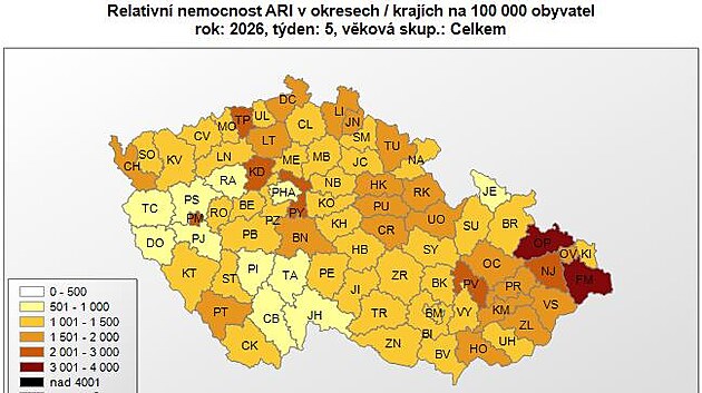 „Nejvyšší nemocnost ARI je hlášena z Moravskoslezského kraje. Přetrvává období, kdy se respirační infekce takzvaně přelévají mezi jednotlivými věkovými skupinami. Stále nemůžeme vyloučit, že ještě dojde k určitému vzestupu nemocnosti u starších lidí. Výskyt chřipky bude přetrvávat i v dalším období, ale pravděpodobně by již nemělo dojít k významnému nárůstu počtu nemocných,“ hodnotí situaci vedoucí Oddělení epidemiologie infekčních nemocí Jan Kynčl.