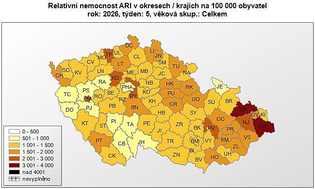 Relativní nemocnost akutními respiračními infekcemi v 5. týdnu roku 2026