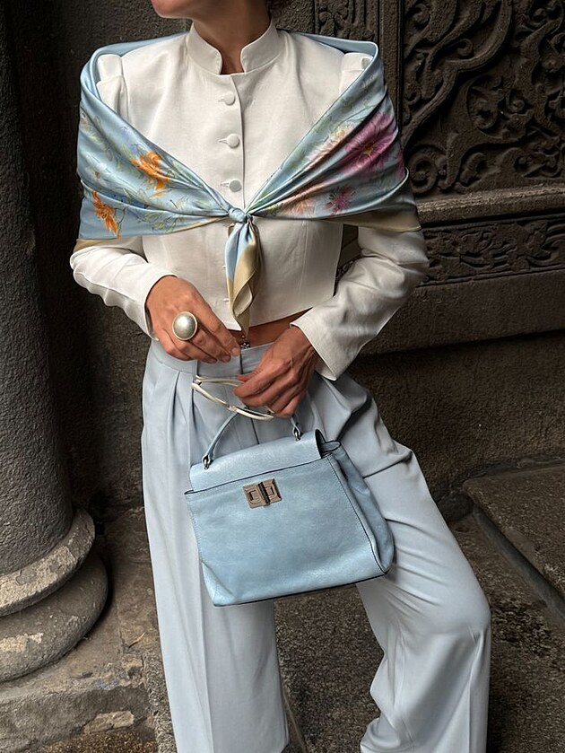Silk šátky se vracejí jako univerzální stylingový nástroj. Objevují se kolem krku, jako detail na kabelce či jako páskový akcent v pase. Kabelky mají často tkanou strukturu nebo minimalistickou, pevně definovanou formu. Doplňky už nejsou pouhým doplněním, ale plnohodnotným kompozičním prvkem outfitu.