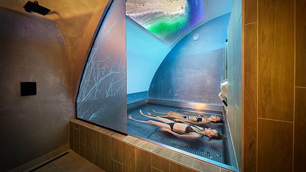 Samotná koupel je umocněna audiovizuální projekcí, která pomáhá vypnout hlavu a nechat stres doslova odplout.