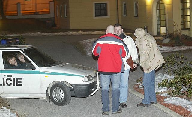Na místě vraždy. Policie u místa, kde byl zastřelen František Mrázek.